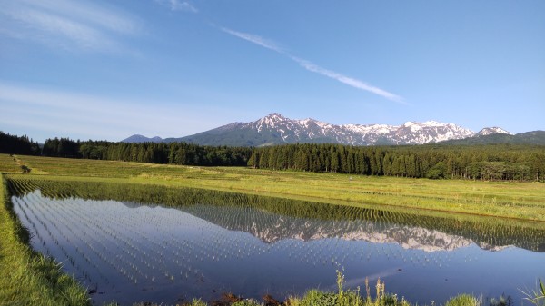 今朝の岡沢の郷は、妙高山に新緑が眩しく映え、田圃に早苗が植えられて美しい田園風景が広がっていました。
